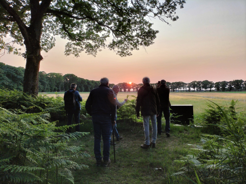 Woensdagavond 4 juni 2025 waren 15 leden samen gekomen bij de parkeerplaats van “in het Anker” voor een avondwandeling over de Tachtig Bunders. We genoten van de mooie avond met verschillende waarnemingen. Zodra het schemerdonker werd, hoorden we het mysterieuze geluid van de Nachtzwaluw. Deze geheimzinnige vogel liet zich goed horen en zien. Het was heel bijzonder om zeker 3 nachtzwaluwen geruisloos en met vlinderachtige vlucht over te zien vliegen. We hoorden daar ook een blaffende ree, de Oehoe, de bosuil, zagen een aantal keren de houtsnip overvliegen en de boomvalk met een prooi! Wat was het een mooie avond!
