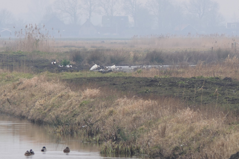 Zondag 9 februari 2025 waren we met 23 leden verzameld bij een parkeerplaats bij Willemstad. Daar was ook gids Cor, die in deze omgeving erg bekend was. We zijn met de auto’s naar een heel mooi poldergebied in de Hoekse Waard gereden. Veel oude graslanden waar veel soorten ganzen en eenden doortrekken en overwinteren. We hadden een bijzondere waarneming van een ross’gans , maar na goed bekijken met telescoopkijker, bleek dat deze een blauwe ring aan had.